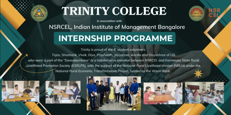 Trinity College proudly collaborates with NSRCEL, Indian Institute of Management Bangalore, to offer transformative internship opportunities. As part of the “Swavalambane” initiative, 8 of our UG student volunteers actively contributed to empowering rural livelihoods.